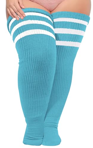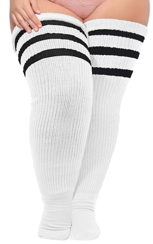Plus size lårhöga strumpor för tjocka lår- extra långa randiga tjocka över knästrumpor - benvärmare stövelstrumpor, Vitt och svart, Large Plus