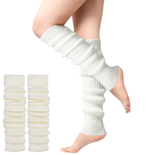 MUNSKT 1 par benvärmare för kvinnor flickor, svarta eller vita mjuka vinterstickade strumpor atletisk stretch knähöga benvärmare för kvinnor, 80/90-tal fest neon balettdans, skridskoåkning tillbehör,