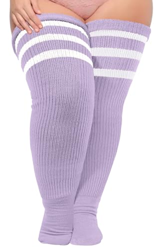 Lårhöga strumpor i plusstorlek för tjocka lår, extra långa och tjocka över knäna, benvärmare, stövelstrumpor, Ljuslila och vit, One size