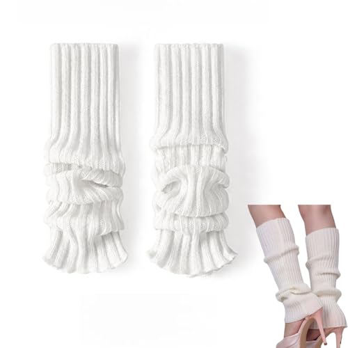 LBJFYHJN Stickad Lång Benvärmare för Kvinnor och Flickor - Manschett Dam för Vinter, Virkning, Vit, 43*11cm