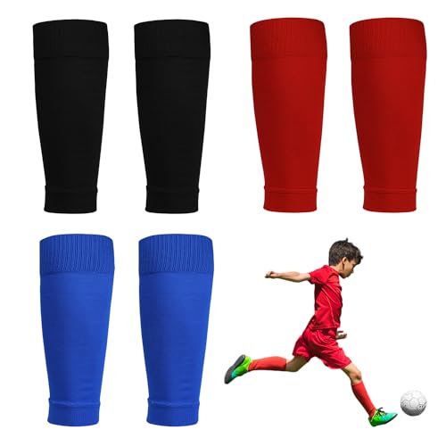 MAXQUU 3 par fotbollsstrumpor och 3 stycken visselpipa, barn-byggsatser, fotbollsstrumpor, benvärmare för nybörjare inom fotbolllöpning eller träning (svart/blå/vit), Svart, blå, vit, one size