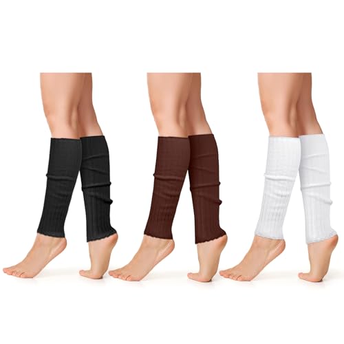 KEYRI 3 par benvärmare, vinter stickade benvärmare för kvinnor mjuka knävärmare dam långa stövlar strumpor för 80-talsfest balettdans skridskoåkning yoga sport skridskoåkning tillbehör, Svart, vit,