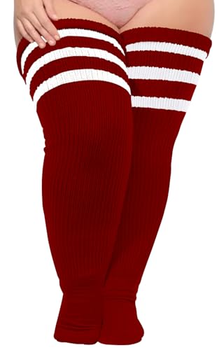 Lårhöga strumpor i plusstorlek för tjocka lår, extra långa och tjocka över knäna, benvärmare, stövelstrumpor, Vinröd och vit, One size