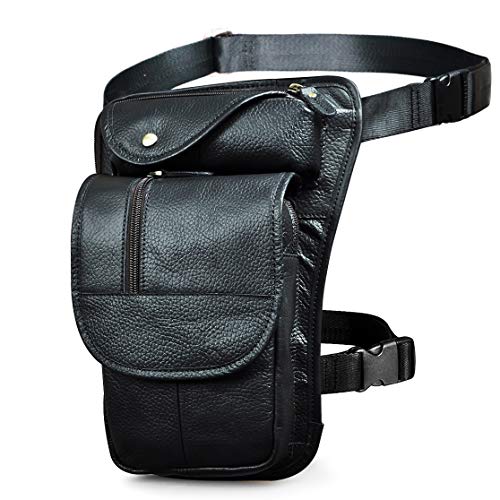 WOSAWE Benväska, vattentät multifuntion lårväska för vandring, camping, klättring, motorcykel, cykling, fiske, jakt, svart, en storlek, Svart, Taille unique