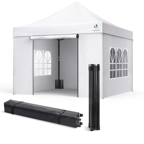 VOUNOT 3 x 3 m kraftigt lusthus med 4 sidor, pop-up paviljong, helt vattentätt festtält med rullväska och benvikter, vit
