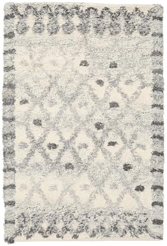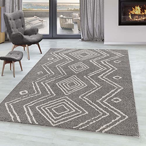 Berber Boho matta, lurvig matta, geometriskt mönster, matta 120 x 170 cm, mjuk och bekväm, lättskött, 100% högkvalitativ polypropen, hög lugg, 30 mm, 120 x 170 cm, grå – vit