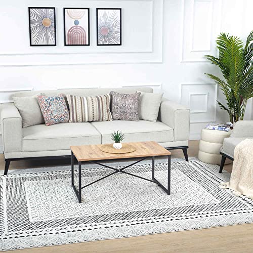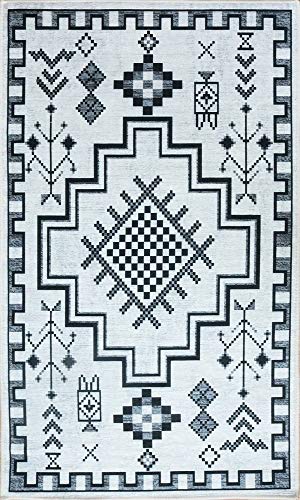 Surya Monaco Geometrisk matta – Scandi mattor vardagsrum, matsal, kök – moderna aztekiska abstrakta mattor för sovrum – Berber Boho-mattstil, enkel skötsel – stor matta 200 x 275 cm, grå, svart och