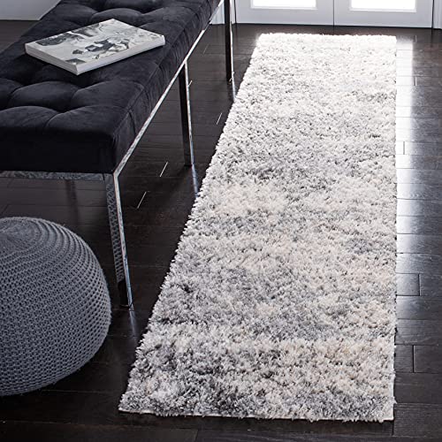 SAFAVIEH marockansk lurvig matta för vardagsrum, matsal, sovrum – Berber Shag-kollektion, kort lugg, i grått och gräddfärgad, 61 x 244 cm