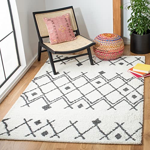Safavieh Marockansk lurvig matta för vardagsrum, matsal, sovrum – berber Shag Collection, hög lugg, elfenben, 91 x 152 cm