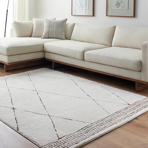 Surya Hvar geometrisk matta – Scandi-mattor vardagsrum, matsal, kök – moderna aztek abstrakta mattor för sovrum – Berber Boho-mattstil, enkel skötsel – stor matta 160 x 213 cm elfenben och brun matta