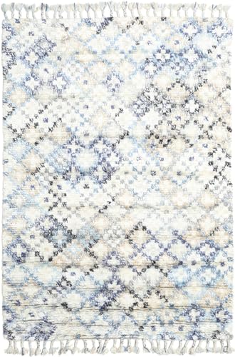 RugVista Greta, Matta, Moroccan/Berber, 160 x 230 cm, Rektangulär, Medellång lugg, Vardagsrum, Sovrum, Endast kemtvätt, Care & Fair certifierad, Krämvit Blå