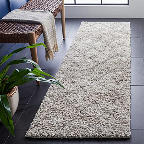 SAFAVIEH marockansk lurvig matta för vardagsrum, matsal, sovrum – Berber Shag-kollektion, kort lugg, i grädde och ljusgrå, 69 x 244 cm