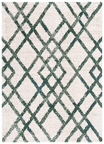 Safavieh Marockansk lurvig inomhus vävd rektangel matta, Berber-shag-kollektion, BER164, i kräm/marinblå, 155 x 229 cm för vardagsrum, sovrum eller alla inomhusutrymmen
