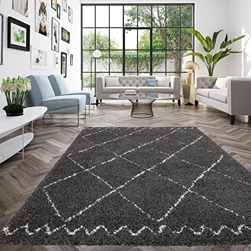 Livabliss Lurvig Matta - Modern Berber-Matta för Vardagsrum 160 x 213 cm, Mjuk Fluffig för Sovrum - Neutral Boho, Enkel Skötsel Plysch Tjock Lugg - Stor Mörkgrå
