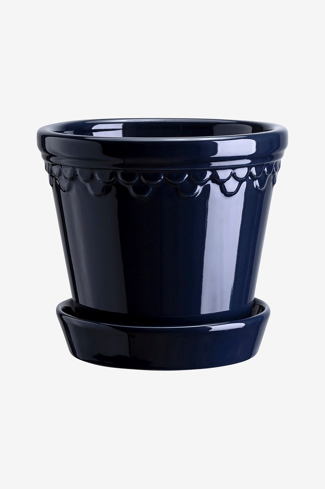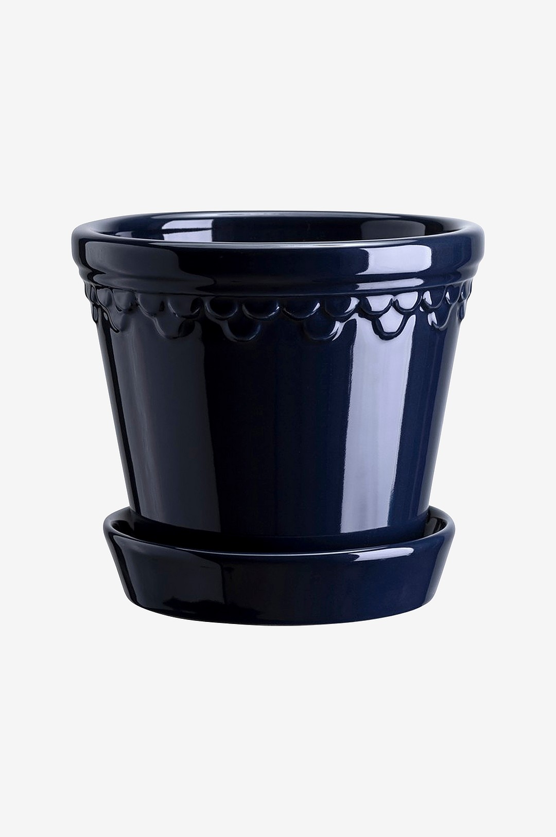 Bergs Potter - Kruka med fat Københavner GLAZED, Ø 10 cm - Blå