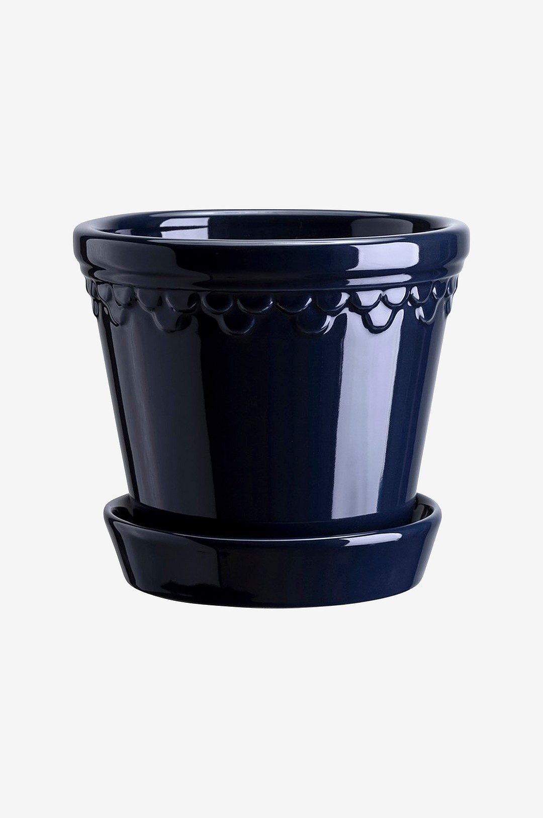 Bergs Potter - Kruka med fat Københavner GLAZED, Ø 10 cm - Blå