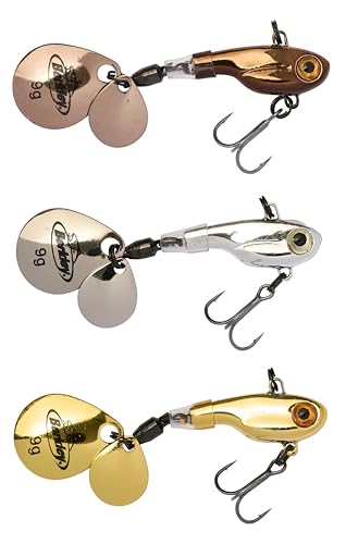 Berkley Pulse Spintail Fishing Lure 3-Pack, Predator Hard Lures med Dual-Blade Vibration för abborre öring och gädda, Fusion 19 Treble Hook, Jig Spinner, River or Lake Freshwater Angler, 9g och 14g
