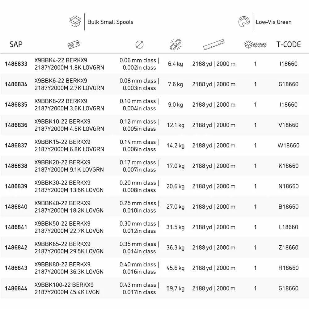 Berkley Unisex's X9BBK65-GG Jordan Lee x9 Braid-X9BBK65-GG-superline, låggrön, 2187yd | 2000 m