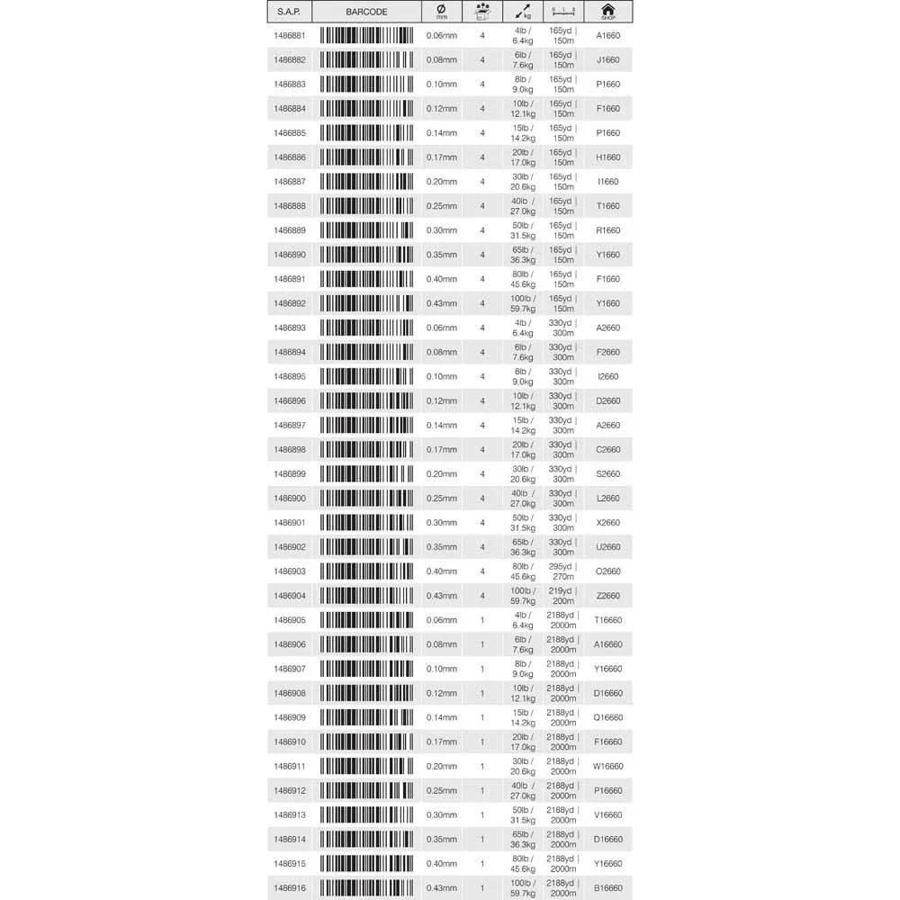 0.3 mm, 2000 m, Flätlina