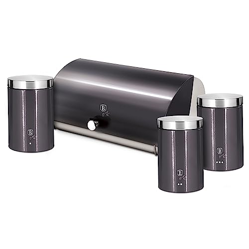 Berlinger Haus Carbon Pro Set Bordbröd + set med 3 burkar Kök Förvaring, Rostfritt stål, Bröd och bakverk, Sliderlock, Bread Box, Grå/Inox