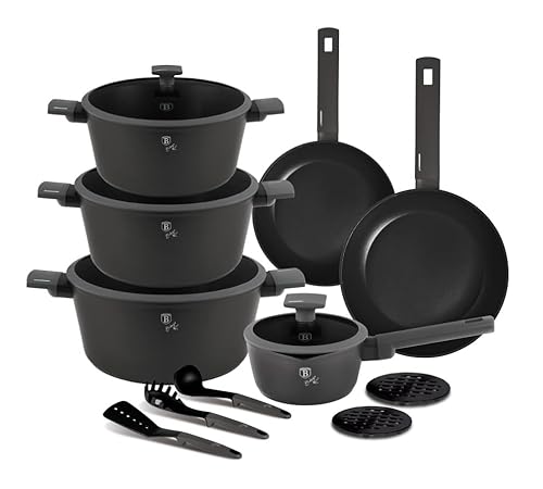 Berlinger Haus 10 st aluminium non-stick induktion köksredskap set – kastruller och stekpannor med lock för hem kök ugn diskmaskinssäker, miljövänlig kompatibel med alla spisar, induktions matlagning