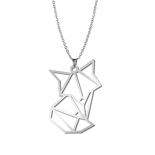 QIAMNI Ihålig räv djur rostfritt stål silver guld hänge halsband för kvinnor män premium nyckelbenskedja berlock personlighet gåva, Rostfritt stål