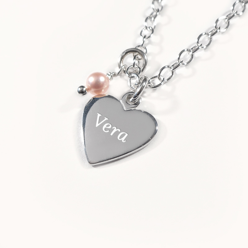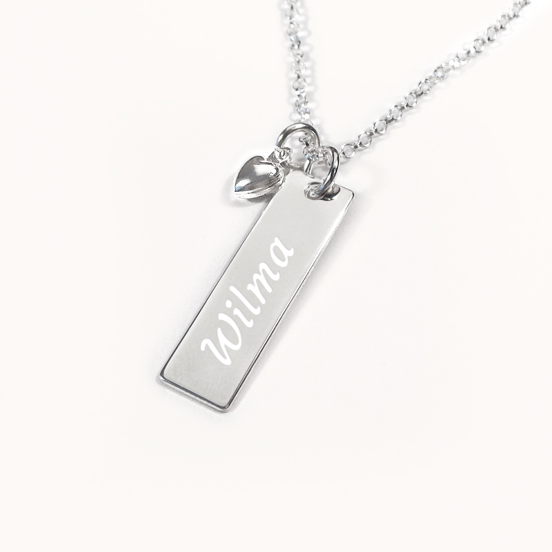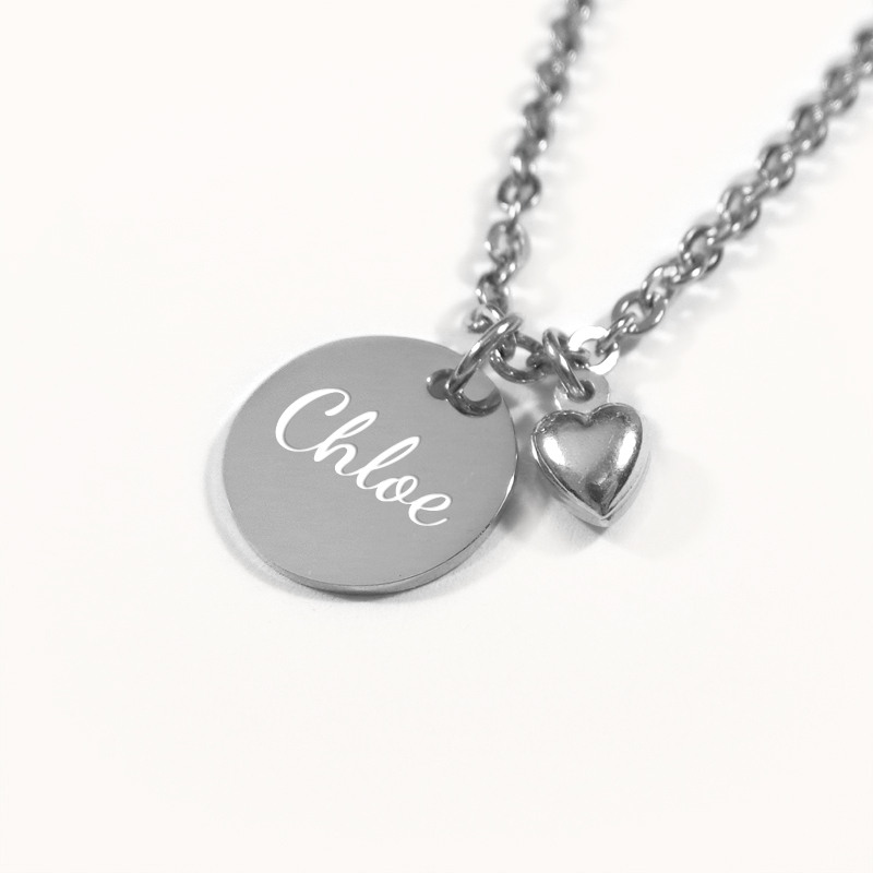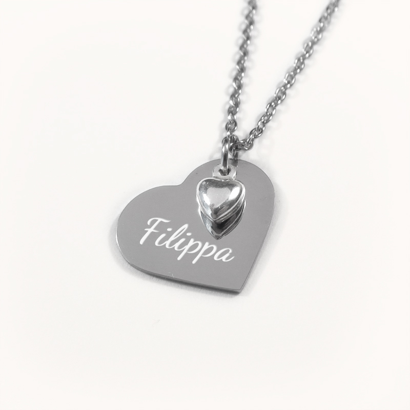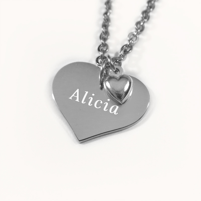 Hjärta med berlock, Halsband med gravyr - Rostfritt stål