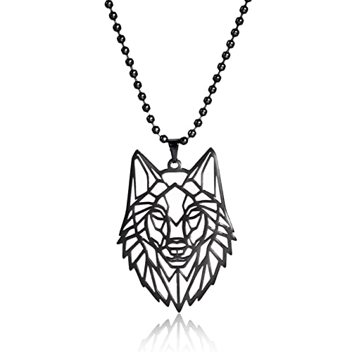 Flongo Wolf kedja män med varghuvud vargpaw berlock viking halsband medaljion silver svart guld kungskedja amulett rostfritt stål herrsmycken punk för män kvinnor kvinnor, Rostfritt stål, Ingen