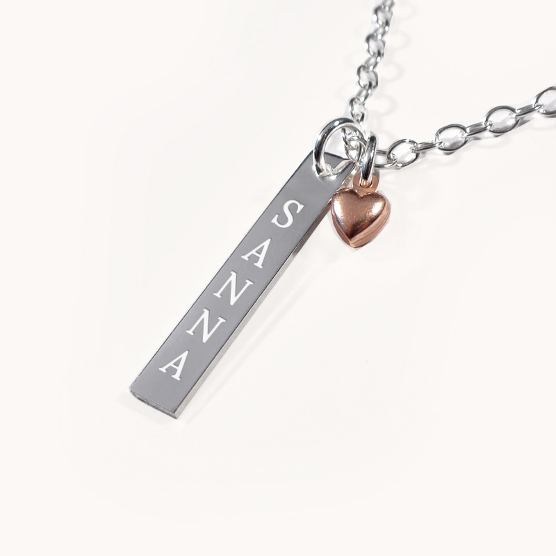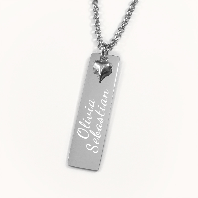 Snett hjärta med berlock, Halsband med gravyr - Rostfritt stål