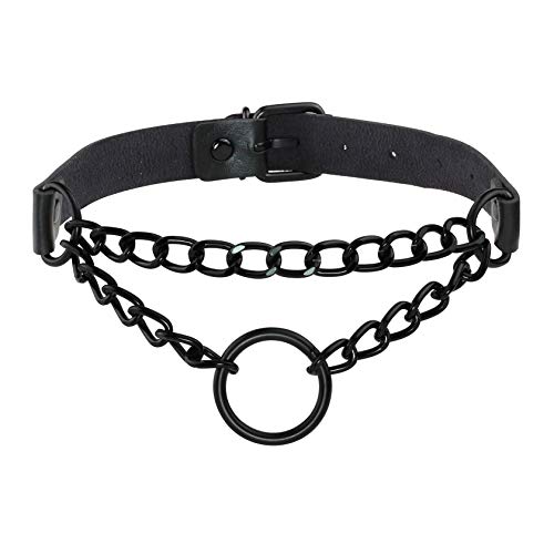MILAKOO Choker-halsband i PU-läder, punk, cirkel/hjärta-berlock, justerbar krage, halsband för kvinnor, Läder