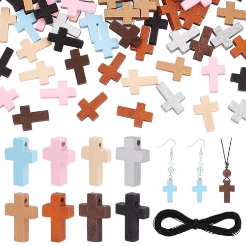 PH PandaHall 128 st 8 stilar träkorshängen, färgglada träkors berlock träkors halsband kors berlocker med hål för påsk Thanksgiving gör-det-själv halsband örhänge smycken hantverk tillverkning