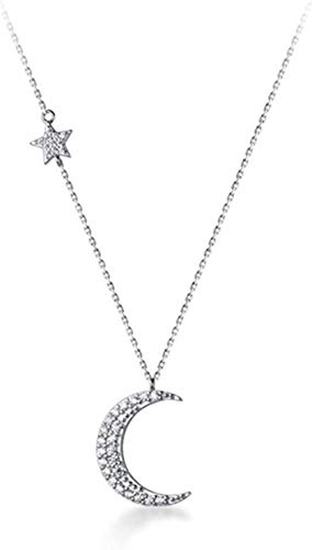 Kristall halvmåne hänge halsband sterlingsilver S925 läckert kubisk zirkonia diamant stjärna berlock justerbar kedja halsband halsband fina smycken gåvor för kvinnor flickor BFF