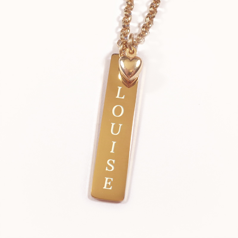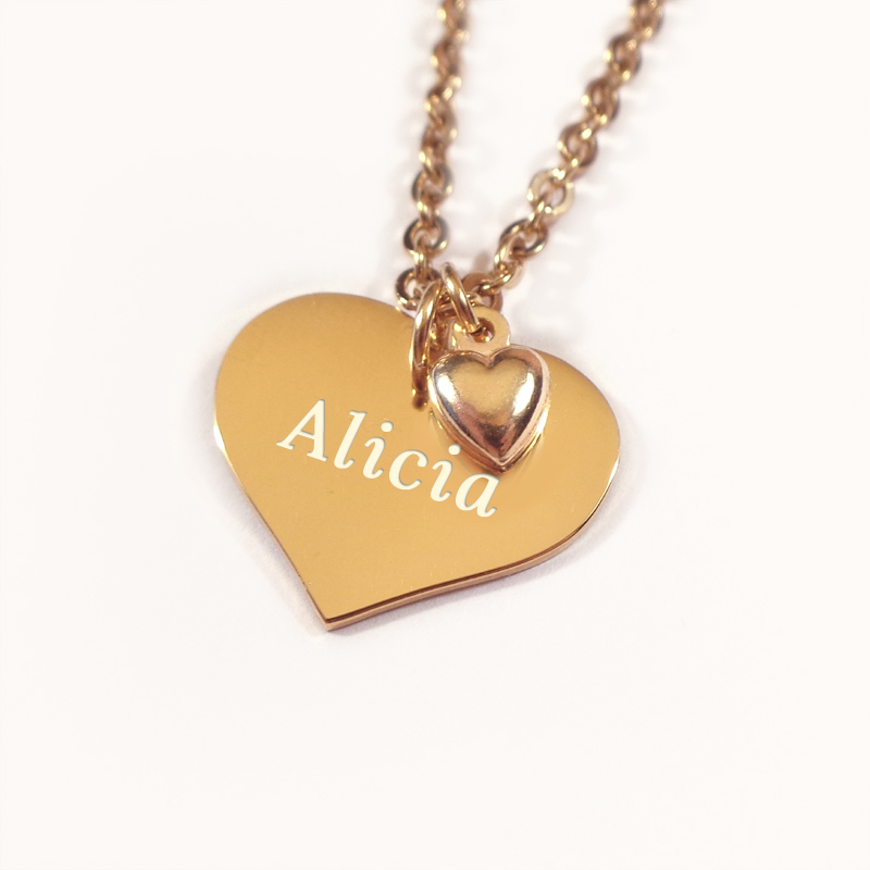 Guld hjärta med berlock, Halsband med gravyr - Rostfritt stål
