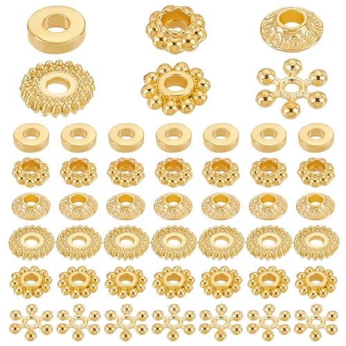 PH PandaHall 300 st gyllene distanspärlor, 6 stilar legering skivdistanser munk bikon blomma lösa pärlor snöflinga redskap smycken pärla berlock för armband halsband örhänge smyckestillverkning