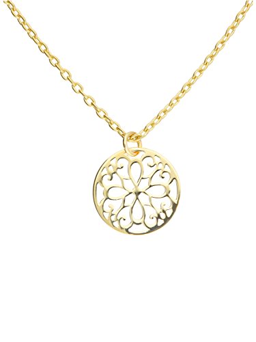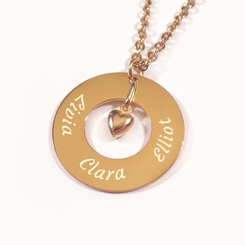 Guld cirkel med berlock, Halsband med gravyr - Rostfritt stål