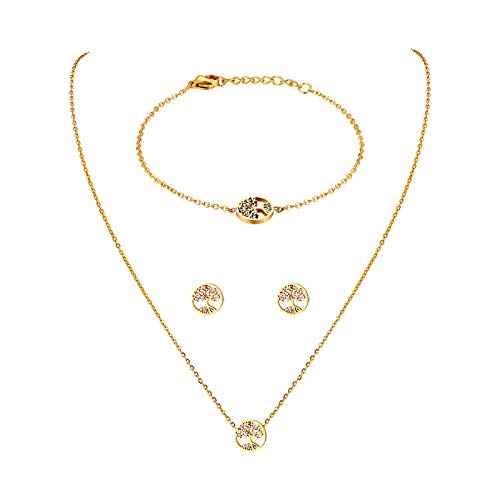 JewelryWe Kvinnor flickor smyckesset, mode livets träd hänge lås berlock rostfritt stål halsband armband och örhängen set