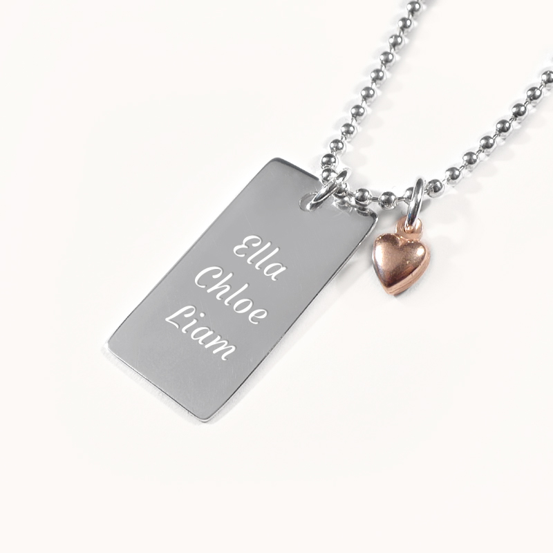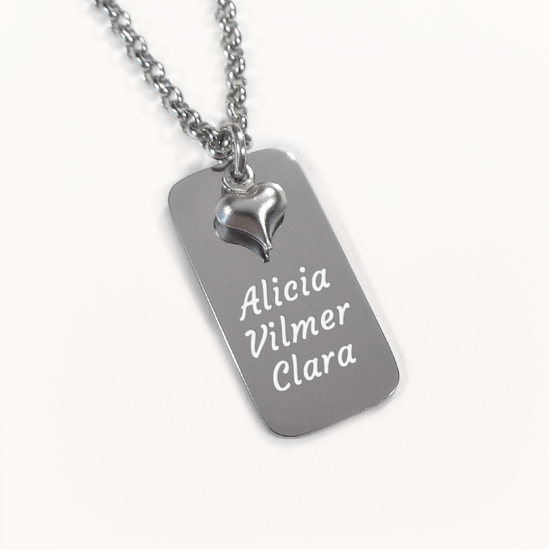 Dogtag med berlock, Halsband med gravyr - Rostfritt stål