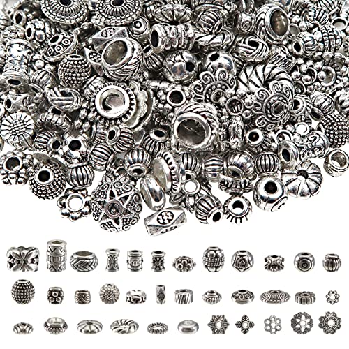 TOAOB 300 st antika tibetanska silverdistanspärlor 35 stilar, mellanrumspärlor, metallrondellpärlor, blandad storlek för gör-det-själv-smyckestillverkning, berlock, halsband, armband