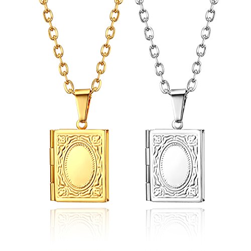 Flongo herrkedja damhalsband fotohänge hänge, rostfritt stål berlock halsband silver guld guld rektangel bokform öppningsbar fotomedaljong polerad elegant kvinnor kvinnor män, Rostfritt stål
