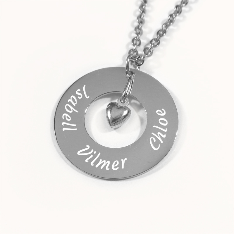 Cirkel med berlock, Halsband med gravyr - Rostfritt stål