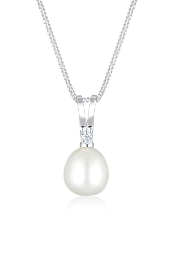 DIAMORE Halsband damer sötvattenodlade pärla berlock diamanter (0,03 ct) i 925 sterlingsilver