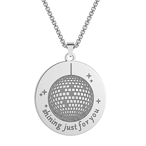 QIAMNI Mirrorball halsband för kvinnor män glänsande bara för dig rostfritt stål graverad cirkel kedja hänge halsband berlock smycken (silver), Rostfritt stål