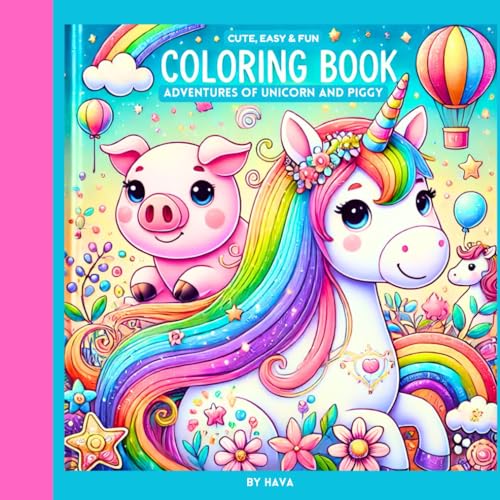 Adventures of unicorn and piggy - Magical and cute: A magical and heartwarming coloring book featuring the delightful adventures of a unicorn and piggy best friends! for age 3+