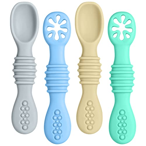 PandaEar Babyskedar silikon matskedar mjuk – 4 stycken barn matskedar baby skedar set BPA gratis självfoder fett handtag bestick för barn småbarn spädbarn mata och avvänjning
