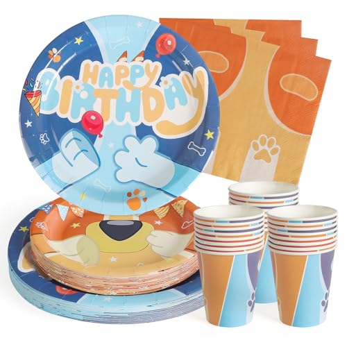 PARTY GO festservis 96 stycken blå tecknad barnfödelsedag festtallrik festtillbehör set innehåller papperstallrikar servetter bestick för födelsedag dekorationer bröllop baby dusch – 24 gäster