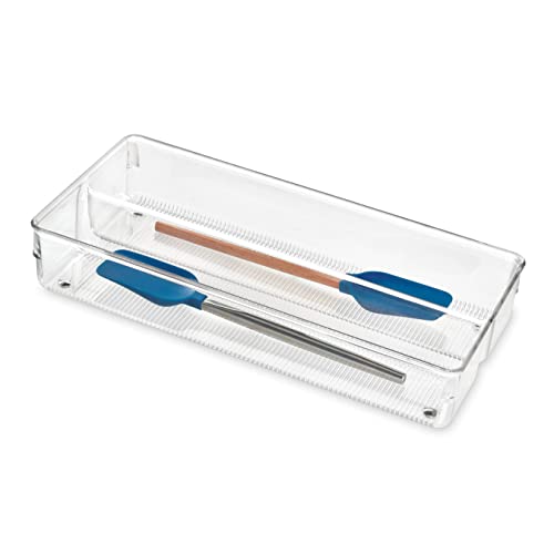 iDesign Linus Bestickbricka för bestick, medelstora kökstillbehör för förvaring och organisering, tillverkad av slitstark plast, klar, 15 x 30 x 5 cm