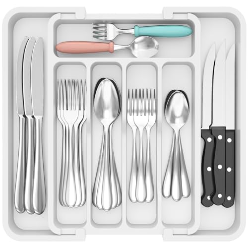Lifewit Silverware Låda Organizer, Expanderbar BPA Free Utensil Fack för Kök, Justerbar Flatware och Bestick Hållare för Skedar Gafflar Knivar, Plast Köksarrangörer och Förvaring, Vit