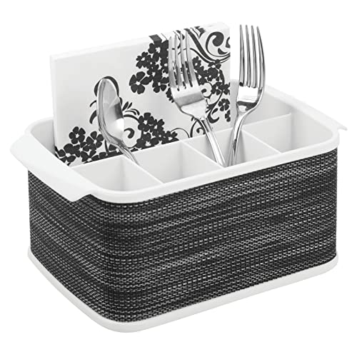 mDesign bestickkorg med handtag – dekorativ korg för förvaring av bestick i köket, trädgården eller på en picknick – med 5 stora fack för anda redskap och kökstillbehör – vit/grafitgrå