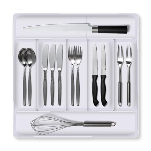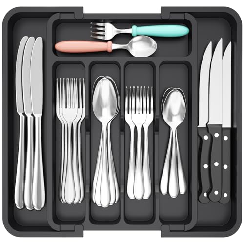 Lifewit Silverware Låda Organizer, Expanderbar BPA Free Utensil Fack för Kök, Justerbar Flatware och Bestick Hållare för Skedar Gafflar Knivar, Plast Köksarrangörer och Förvaring, Svart