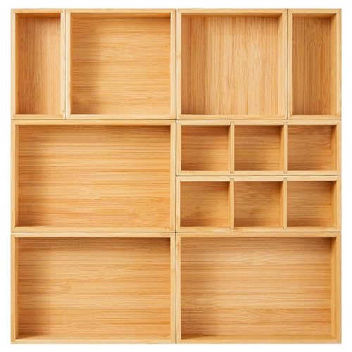 Fabsome Lådorganisatör, set med 9 bambuträ kök smink skrivbord skräp te lådor förvaringslådor fack för bestick, liten träbehållarbricka för badrum, kontor